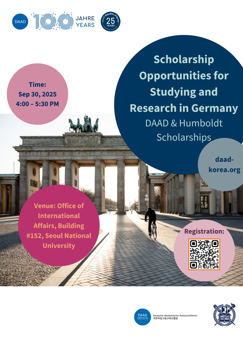 - DAAD(독일고등교육진흥원) 장학금, Humboldt(훔볼트) 재단 연구장학금 안내