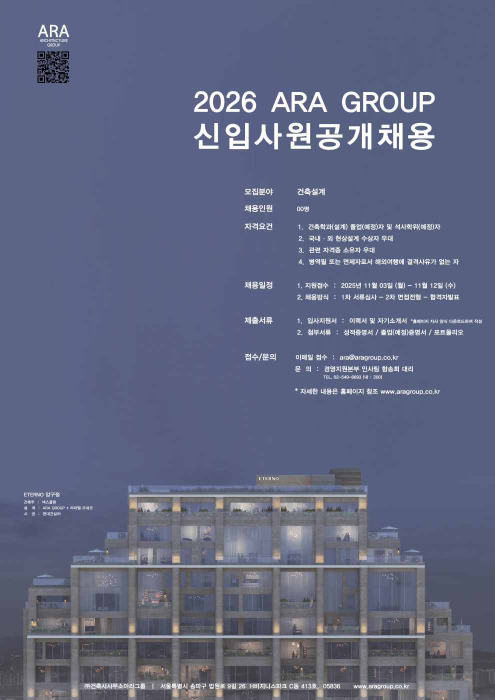 (주)건축사사무소아라그룹 2026년 신입사원 공개 채용