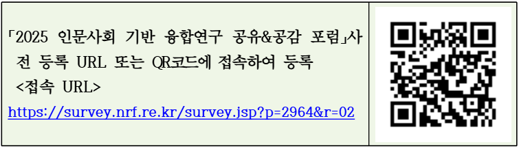 2025년 인문사회 기반 융합연구 활성화를 위한 융합연구 공유&공감 포럼 개최 및 사전 등록 안내