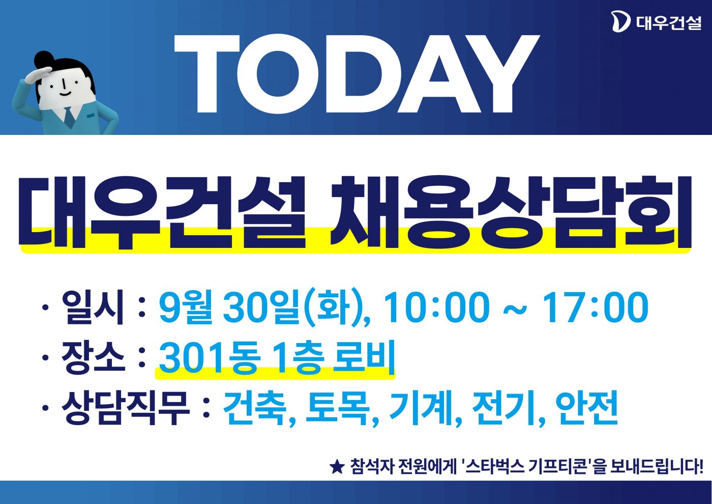[대우건설] 2025년 하반기 신입사원 채용 상담회 (9/30)
