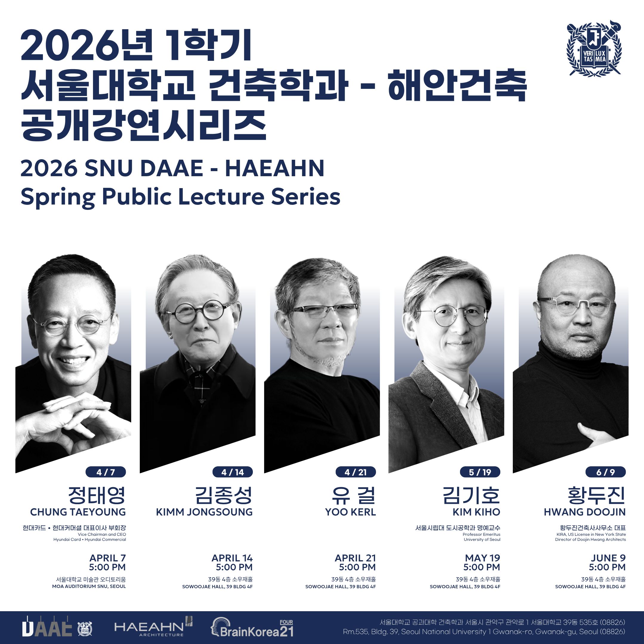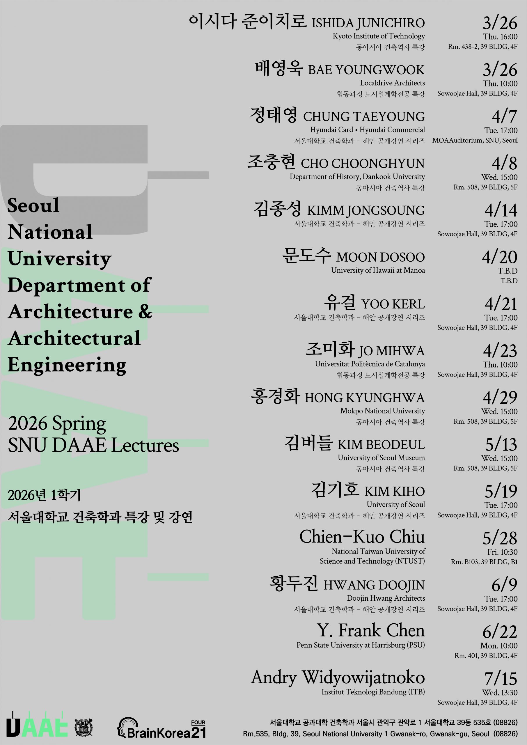 2026학년도 봄학기 서울대학교 건축학과 강연시리즈 [김종성 건축 강연회]