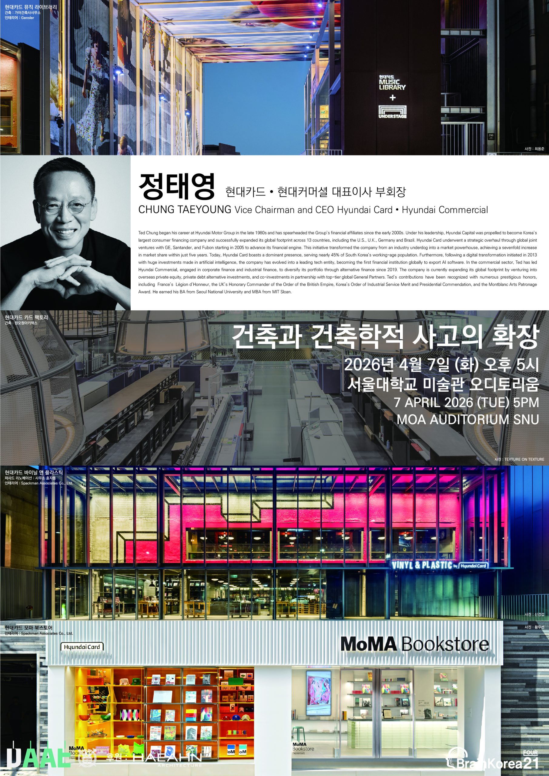 서울대학교 건축학과 공개강연 안내: 정태영 현대카드·현대커머셜 대표이사 부회장