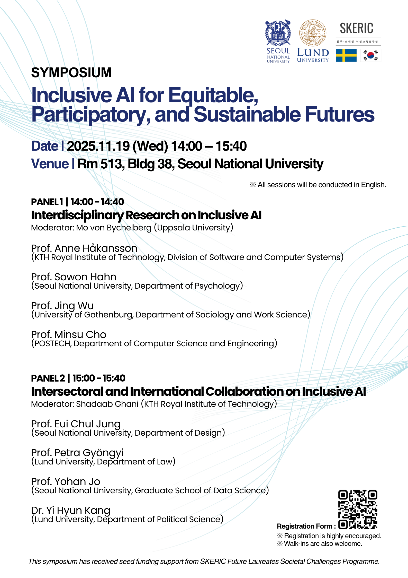 ○ 참석 대상: SKERIC 소속 한-스웨덴 연구자들과의 교류와 학제 간 국제 협력에 관심 있는 서울대 교수, 연구자, 학생, 관계자 누구나(사전 등록 불요)